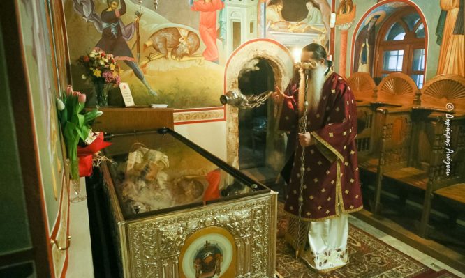 Από την Ιερά Λάρνακα του αφθάρτου Σκηνώματος του Οσίου Βησσαρίωνος του Αγαθωνίτου ξεκίνησε σήμερα με Αρχιερατική Θεία Λειτουργία των Προηγιασμένων Τιμίων Δώρων ο εορτασμός της Συνάξεως πάντων των Φθιωτών Αγίων.