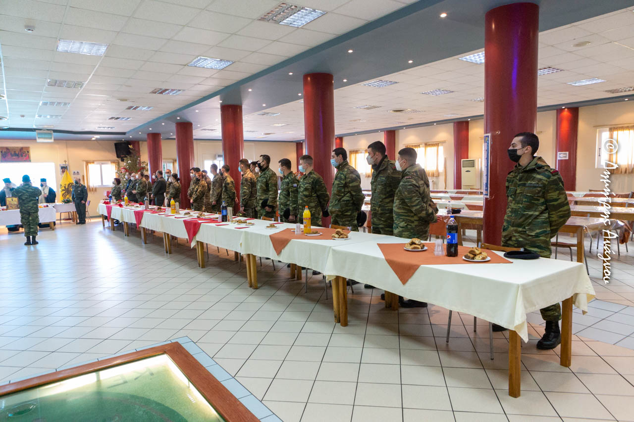 Ο Διοικητής του Κέντρου ευχαρίστησε τον Σεβασμιώτατο κ. Συμεών για την τιμητική αποδοχή της προσκλήσεως και την ευλογητή παρουσία του στο στρατόπεδο και εκ μέρους όλων του ευχήθηκε καλή, ευλογημένη και καρποφόρα χρονιά με δύναμη και υγεία για την συνέχιση του πλούσιου και πολυποίκιλου ποιμαντικού έργου του στην Φθιώτιδα και στην τοπική Εκκλησία.