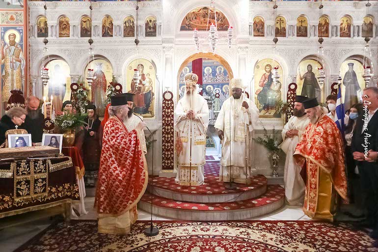 Στις Πανηγυρικές Ακολουθίες προηξήρχε φιλοξενούμενος του Σεβασμιωτάτου Μητροπολίτου Φθιώτιδος κ. Συμεών ο Ιεραπόστολος Ιεράρχης της Μαύρης Ηπείρου, Θεοφιλέστατος Επίσκοπος Γκούλου και Βορείου Ουγκάντας κ. Νεκτάριος, ο οποίος ευρίσκεται αυτές τις ημέρες στην Μητρόπολη Φθιώτιδος.