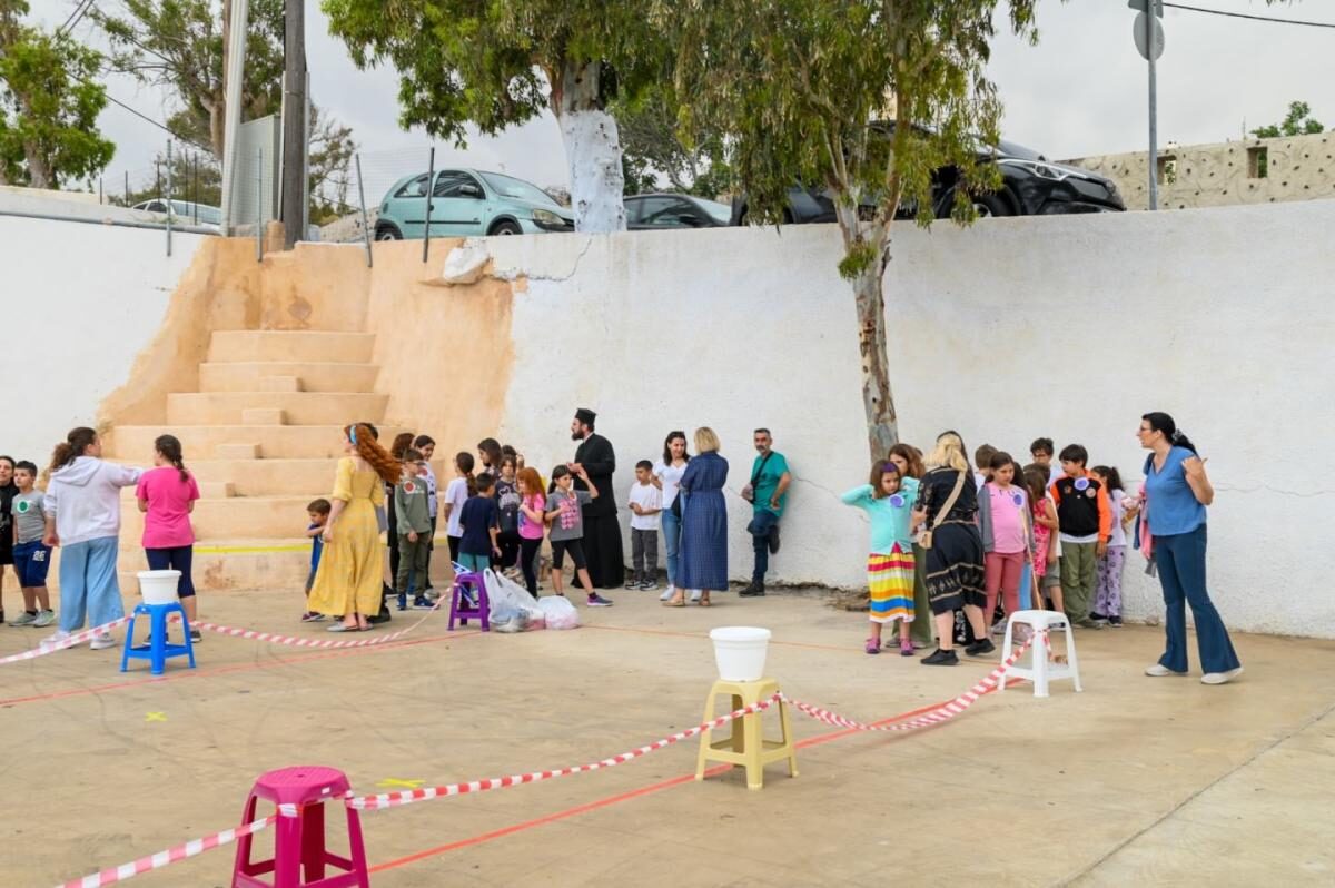 Παρά τις δύσκολες καιρικές συνθήκες που επικρατούσαν τίποτα δεν επηρέασε τη γιορτή και το πρόγραμμα περιελάμβανε πολλά παιχνίδια, δραστηριότητες για όλους, μουσική, χορό, τραγούδι, παρουσίαση της τρισδιάστατης αναπαράστασης μιας αρχαίας τριήρους, όπως αυτή απεικονίζεται στις τοιχογραφίες του αρχαιολογικού χώρου του Ακρωτηρίου Θήρας και πολλά κεράσματα για όλους! Ο χώρος πλημμύρισε από παιδικές φωνές, δημιουργία, χαρά και πίστη.