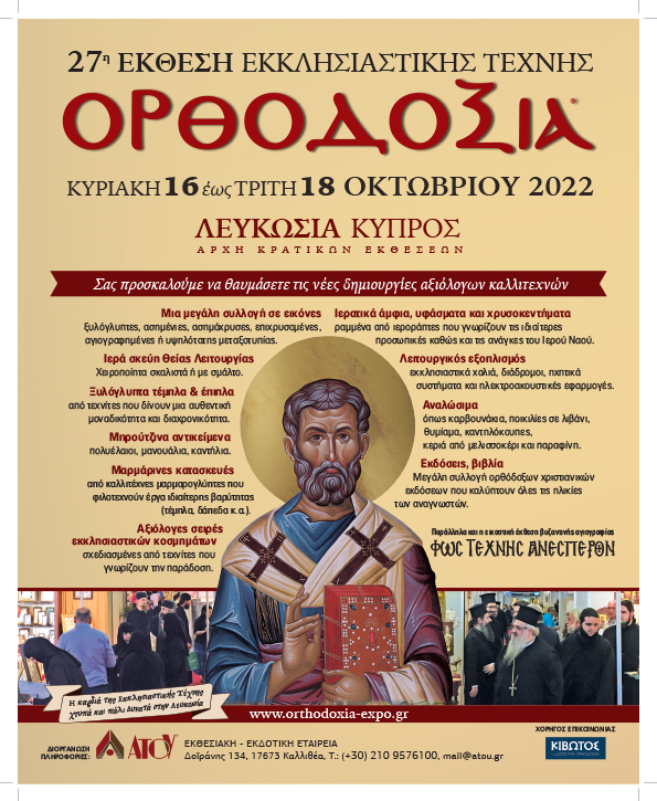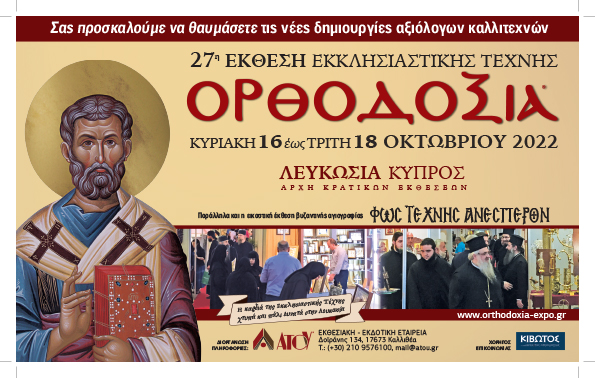 Η 27η Ἐκθεση Εκκλησιαστικής Τέχνης «Ορθοδοξία» πραγματοποιείται από την Κυρικά 16 Οκτωβρίου έως Τρίτη 18 Οκτωβρίου 2022, στη Λευκωδία της Κύπρου.