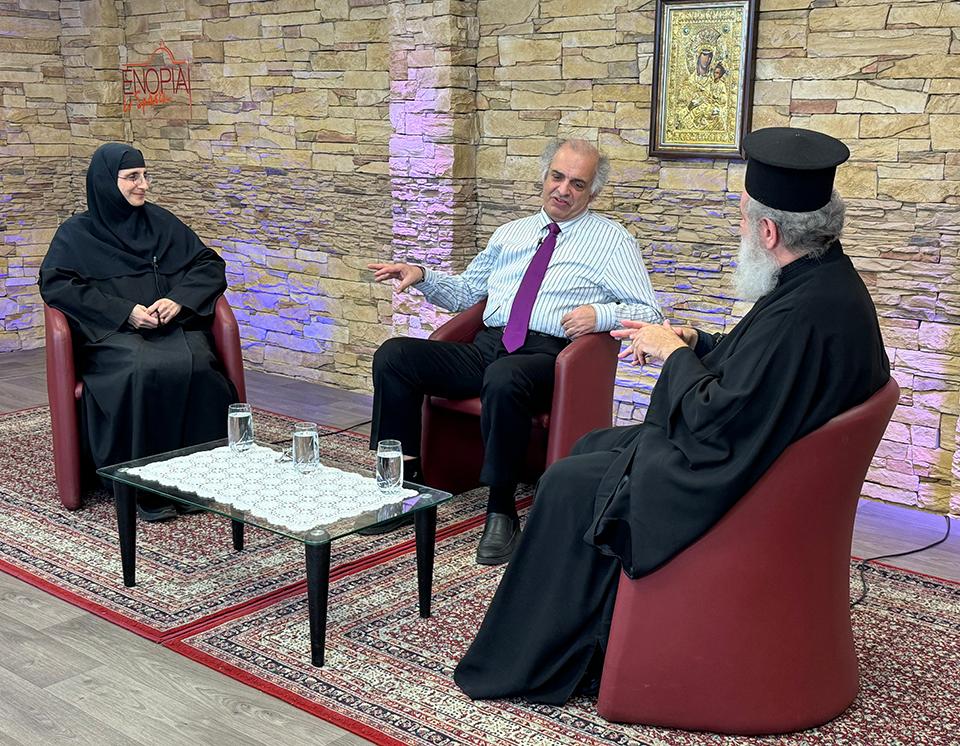 Στο «Ενοριακό Αρχονταρίκι» του Ιερού Ναού Ευαγγελιστρίας Πειραιώς και στο πλαίσιο των εκδηλώσεων «Ευαγγελίστρια 2024», την Δευτέρα 1 Απριλίου, ο Ηλίας Λιαμής, Δρ. Θεολογίας, Μουσικολόγος και Συγγραφέας, φιλοξένησε τον Αρχιμανδρίτη π. Συμεών Βενετσιάνο, Γενικό Διευθυντή του Ιδρύματος Νεότητος και Οικογενείας της Ιεράς Αρχιεπισκοπής Αθηνών και την Γερόντισσα Φιλοθέη, Ηγουμένη της Ιεράς Μονής Παναγίας Βρυούλων, σε μια συζήτηση με θέμα «Η αγία Σαρακοστή σε έναν ταραγμένο κόσμο».