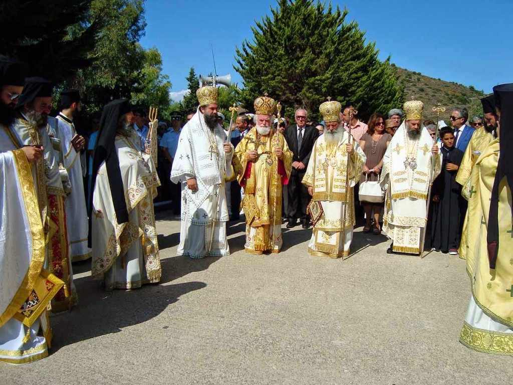Στην συνέχεια σχηματίσθηκε λιτανευτική πομπή πέριξ του ναού του Αγίου και τελέσθηκε αρχιερατικόν τρισάγιο στον τάφον του μακαριστού μητροπολίτη κυρού Ιερόθεου.