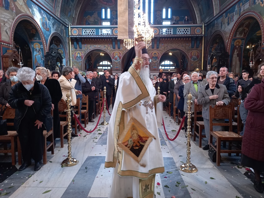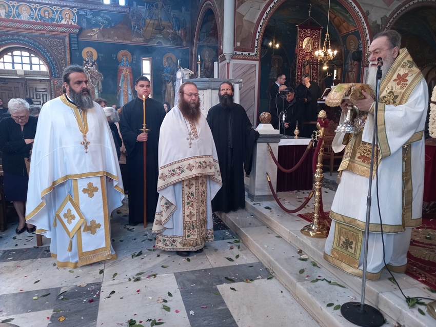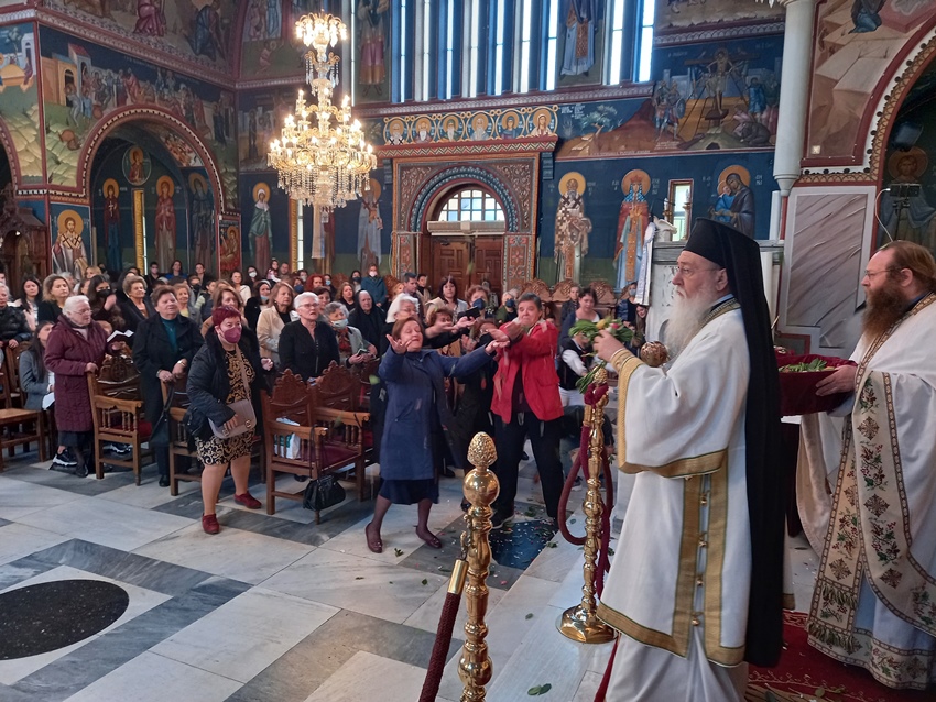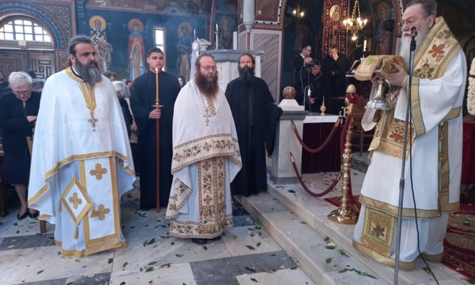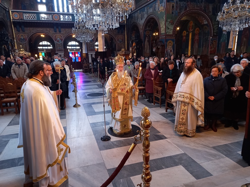 Αμέσως μετά την Θ. Λειτουργία ο Ποιμενάρχης τέλεσε, στον ως άνω Ι. Ναό, την Εξόδιο Ακολουθία της Αικατερίνης Γεωργιάδη, ομιλώντας παρηγορητικά και επιστηρικτικά προς την οικογένεια, τους συγγενείς και φίλους της μακαριστής.