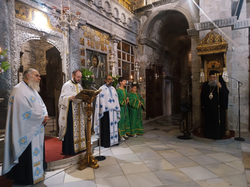 Τον Σεβασμιώτατο Ποιμενάρχη μας πλαισίωσαν οι πατέρες του Ιερού Προσκυνήματος, Πρωτοπρ. π. Στυλιανός Μπιζάς (Αντιπρόεδρος της Διοικούσης Επιτροπής του Ι.Π.) και Πρωτοπρ. π. Χρήστος Πετρόπουλος, καθώς και ο Πρωτοπρ. π. Νεκτάριος Αλεξόπουλος, εφημέριος του Ιερού Μητροπολιτικού Ναού Ζωοδόχου Πηγής Νάξου (ο οποίος και κήρυξε τον θείο λόγο), συνοδευόμενος από ομάδα 35 προσκυνητών εκ Νάξου.