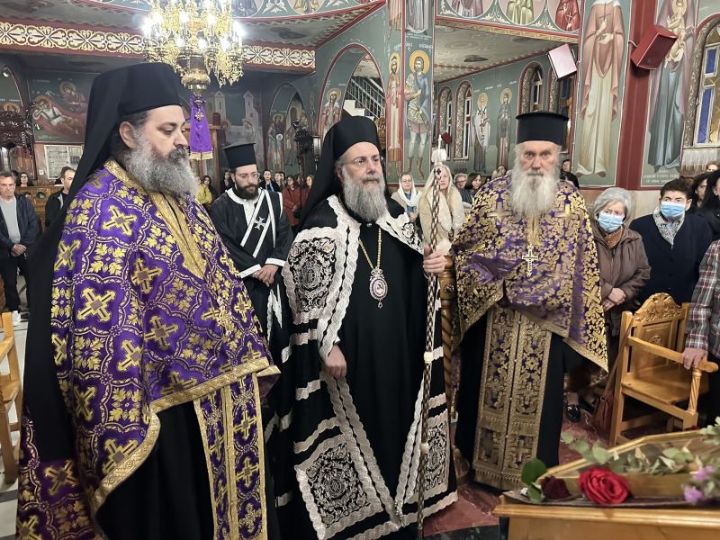 Ακολούθως, μετέβη στον Ιερό Ναό Αγίου Νικολάου του εκ Μετσόβου Τρικάλων, όπου και χοροστάτησε στην Ιερά Ακολουθία του Νυμφίου μέσα σε κλίμα κατάνυξης και με τη συμμετοχή πλήθους πιστών.