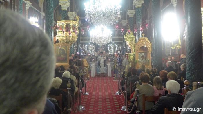 Μέσα σε κλίμα ιερής κατάνυξης τελέστηκε η ακολουθία της Β΄Στάσης των Χαιρετισμών στη Μητρόπολη Σύρου.