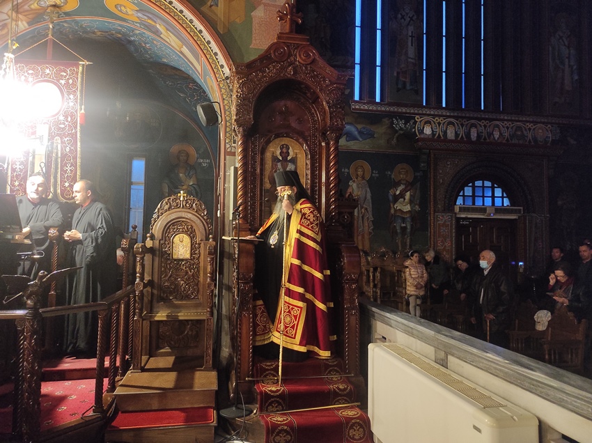 Στην ομιλία του ο Θεοφιλέστατος Πρωτοσύγκελλος της Ι. Μητροπόλεώς μας δι᾿ ολίγων αναφέρθηκε στην επερχόμενη μεγάλη εορτή του Ευαγγελισμού, ως εορτή και ημέρα χαράς, επεξηγώντας τους λόγους «της χαράς» για την συγκεκριμένη εορτή και δίκην «προεορτίων» και «μεθεορτίων» ύμνων αυτής, όπως συνηθίζεται για τις Δεσποτικές και Θεομητορικές εορτές της Πίστεώς μας, στις Ακολουθίες των Χαιρετισμών της Μ. Τεσσαρακοστής κατά τις Παρασκευές των πρώτων τεσσάρων κατά σειρά εβδομάδων των Αγίων Νηστειών, εστιάζοντας στο Ευαγγελικό ανάγνωσμα της Παρασκευής εκ των Παννυχίδων της Α’ Εβδομάδος των Νηστειών.