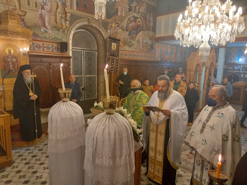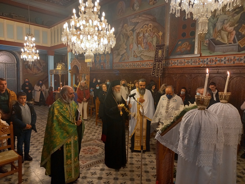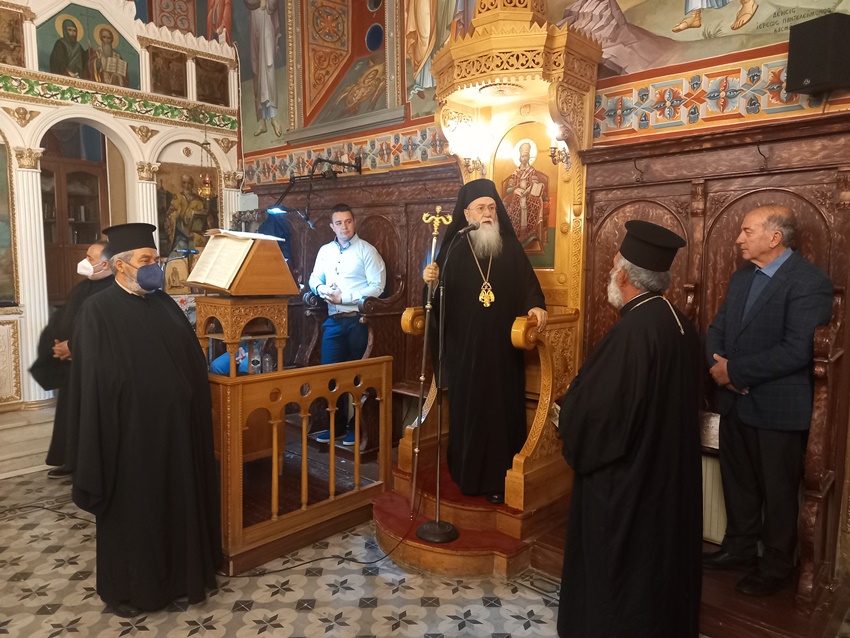 Πριν την Απόλυση της Ακολουθίας ο Ιερέας του χωριού, Αιδεσ. π. Σπυρίδων Κασμάς, ευχαρίστησε τον Σεβ. Ποιμενάρχη μας για την παρουσία του και δώρισε εκ μέρους όλων των πιστών μια εικόνα του Αγ. Χαραλάμπους, ενώ ο Σεβασμιώτατος αναφέρθηκε στον στενό σύνδεσμο που έχει με τον Άγιο Χαράλαμπο.