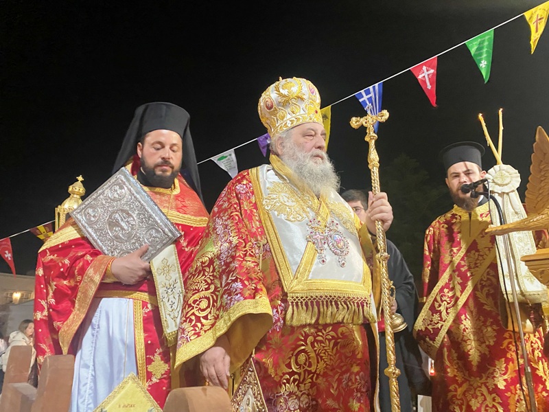 Στο τέλος της Θείας Λειτουργίας, ο Σεβασμιώτατος ανέγνωσε τον Κατηχητικό Λόγο του Ιερού Χρυσοστόμου καθώς και την ειδική ευχή για τα κόκκινα αυγά και τα λοιπά εδέσματα (τα οποία και διένειμε στο εκκλησίασμα) ενώ απηύθυνε εόρτιες ευχές προς όλους.