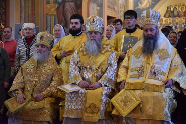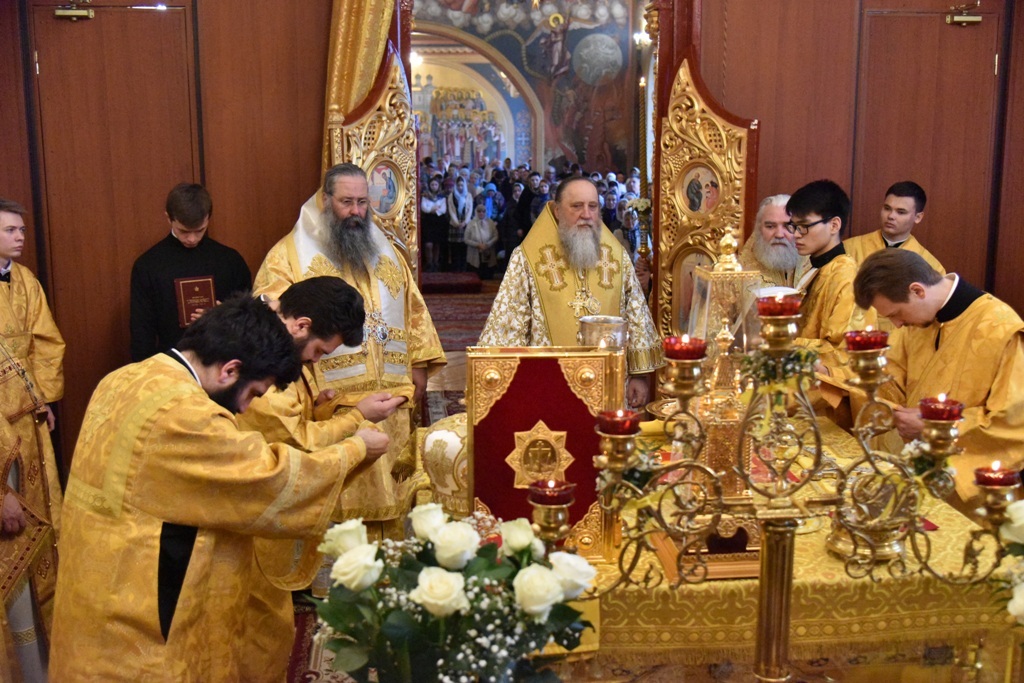 Την Πέμπτη 28 Φεβρουαρίου, στον Ιερό Ναό Τριών Ιεραρχών, που βρίσκεται στον 3ο όροφο της Θεολογικής Σχολής, πραγματοποιήθηκε Αρχιερατικό Συλλείτουργο, προεξάρχοντος του οικείου Ιεράρχου Σεβασμιωτάτου κ. Βενιαμίν και συλλειτουργούντων του Σεβασμιωτάτου κ. Γεωργίου και του Θεοφιλεστάτου κ. Αλεξίου. Επίσης, ιερούργησαν και όλοι οι φιλοξενούμενοι σύνεδροι κληρικοί, που ήλθαν από διάφορες χώρες και άλλες ρωσικές πόλεις, ενώ έψαλλαν δύο άριστα προετοιμασμένες χορωδίες φοιτητών και φοιτητριών, αντίστοιχα.