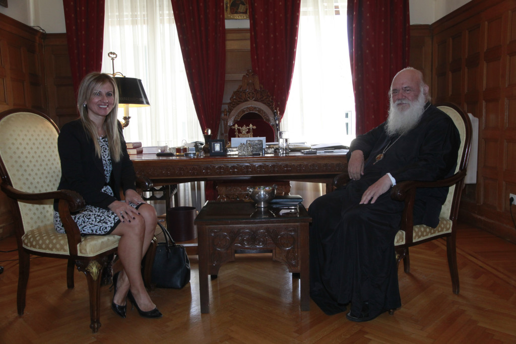 Την αντιδήμαρχο Οικονομικών του Δήμου Αθηναίων κα. Εύα Κοντοσταθάκου έκανε δεκτή σήμερα το μεσημέρι στο γραφείο του, ο Αρχιεπίσκοπος Αθηνών και Πάσης Ελλάδος.