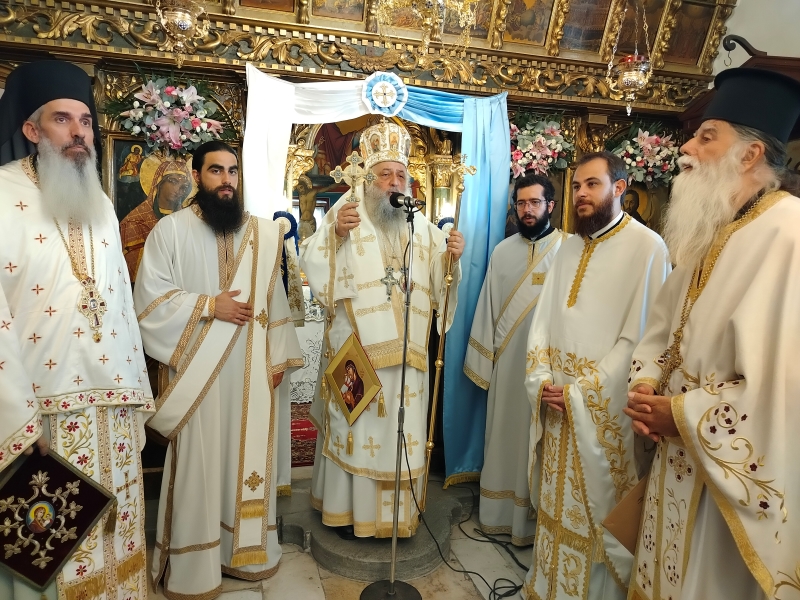 Το πρωί του Σαββάτου 23-8-2025, ο Σεβασμιώτατος Μητροπολίτης μας κ. Καλλίνικος, χοροστάτησε στον Όρθρο, ευλόγησε τους προσφερθέντες άρτους και προεξήρχε της Θείας Λειτουργίας, πλαισιούμενος από τον Αρχιμ. π. Πρόδρομο Αργυρόπουλο, Κληρικό της Ι.Μ. Νέας Ιωνίας (ο οποίος και κήρυξε τον θείο λόγο), τον Αρχιερατικό Επίτροπο Βίβλου και οικείο εφημέριο, Πρωτοπρ. π. Εμμανουήλ Σκουλάτο, τον Πρωτοπρ. π. Συμεών Τελόπουλο, τον Πρεσβ. π. Παναγιώτη Σιαχάμη, τον Αρχιδιάκονο π. Νεκτάριο Σκουλάτο και τον Διακ. π. Δαυίδ Καρυ