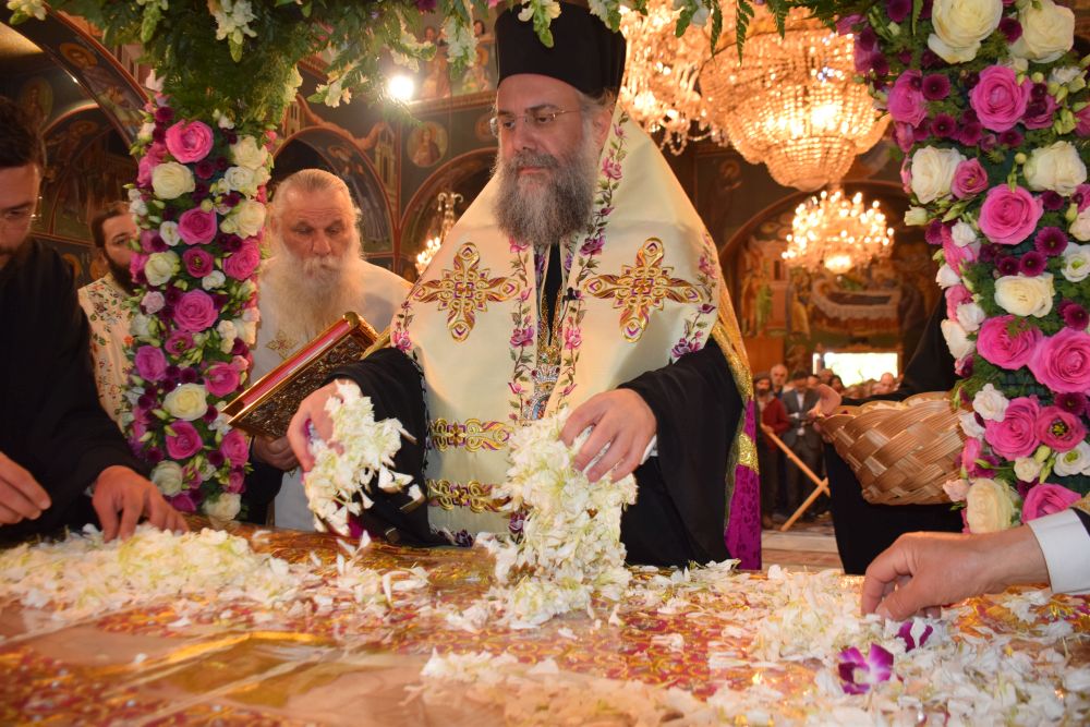 Πλήθη πιστών συμμετείχαν στην Ιερά Ακολουθία παρακολουθώντας ευλαβικά με κατάνυξη και συγκίνηση μία από τις κατανυκτικότερες τελετές που λαμβάνουν χώρα στην Ορθόδοξη Λειτουργική Παράδοση, τον Εσπερινό της Αποκαθηλώσεως, καθώς περίμεναν με περισσή υπομονή για να προσκυνήσουν το εναποθετημένο Σώμα του Κυρίου στον λαμπρά κοσμημένο και ανθοστόλιστο Επιτάφιο του Μητροπολιτικού Ναού, ψάλλοντας το Δοξαστικό «Σε τον αναβαλλόμενον…».