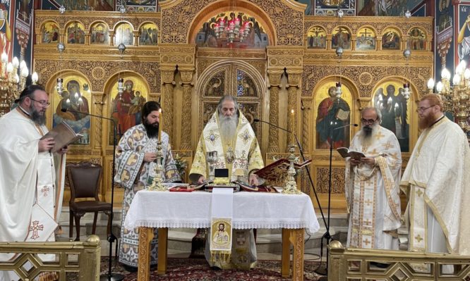Την αρχαιοπρεπή Θεία Λειτουργία του Αγίου Αμβροσίου Επισκόπου Μεδιολάνων «ο οποίος ειργάσθη υπέρ του Ευαγγελίου, μετά πολλής επιστήμης, αγάπης και προσφοράς κατά τον 4ο αιώνα», τέλεσε σήμερα Κυριακή 10 Δεκεμβρίου 2023 ο Σεβασμιώτατος Μητροπολίτης Πειραιώς κ.Σεραφείμ, στον Ιερό Ναό Παναγίας Μυρτιδιωτίσσης Πειραιώς.