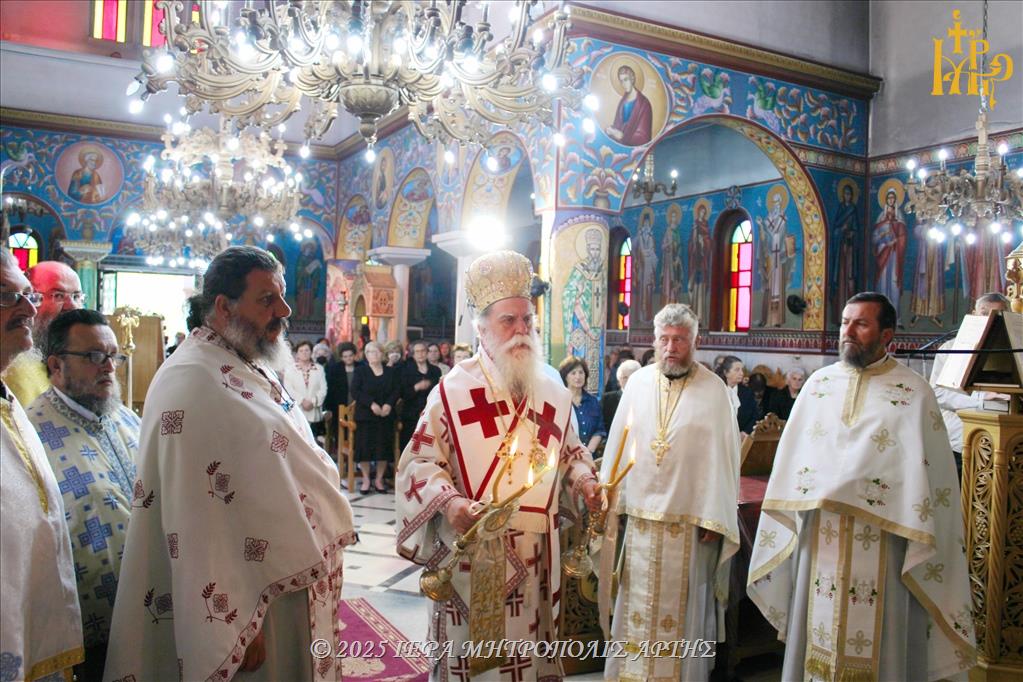 Αρχιερατική Θεία Λειτουργία προεξάρχοντος του Σεβασμιωτάτου Μητροπολίτου Άρτης κ. Καλλινίκου ετελέσθη την Τετάρτη 14 Μαΐου 2025, το πρωΐ, στον πανηγυρίζοντα Ενοριακό Ιερό Ναό του Αγίου Ιερομάρτυρος Θεράποντος του θαυματουργού, στον οικισμό Αγίων Αναργύρων Άρτης.