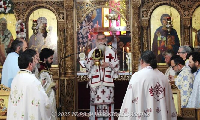 Αρχιερατική Θεία Λειτουργία προεξάρχοντος του Σεβασμιωτάτου Μητροπολίτου Άρτης κ. Καλλινίκου ετελέσθη την Τετάρτη 14 Μαΐου 2025, το πρωΐ, στον πανηγυρίζοντα Ενοριακό Ιερό Ναό του Αγίου Ιερομάρτυρος Θεράποντος του θαυματουργού, στον οικισμό Αγίων Αναργύρων Άρτης. Στο Κήρυγμά του, ο Σεπτός Ποιμενάρχης μας, ετόνισε, ότι “η αγάπη των αγίων συνεχίζεται και μετά το θάνατό τους”.