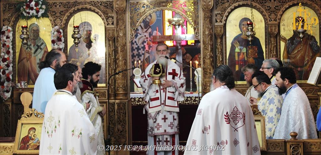 Αρχιερατική Θεία Λειτουργία προεξάρχοντος του Σεβασμιωτάτου Μητροπολίτου Άρτης κ. Καλλινίκου ετελέσθη την Τετάρτη 14 Μαΐου 2025, το πρωΐ, στον πανηγυρίζοντα Ενοριακό Ιερό Ναό του Αγίου Ιερομάρτυρος Θεράποντος του θαυματουργού, στον οικισμό Αγίων Αναργύρων Άρτης.