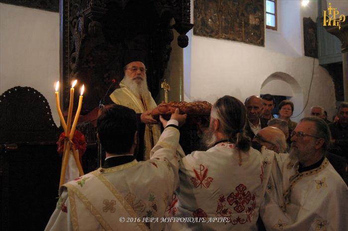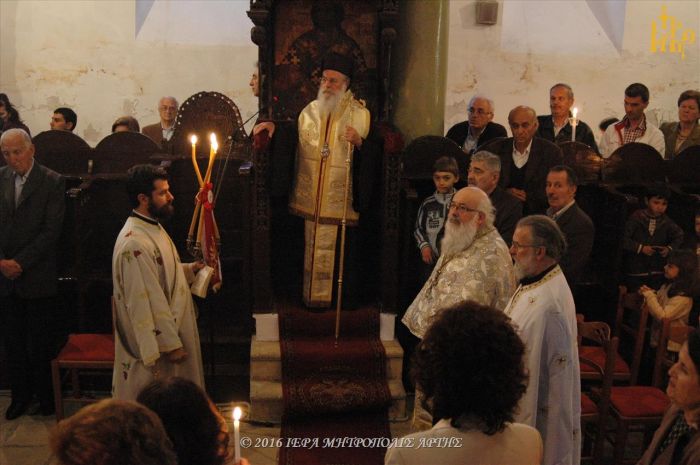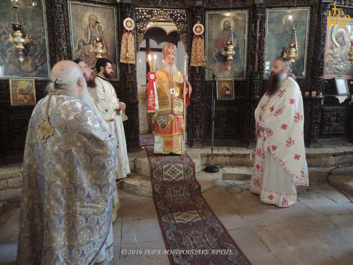 Στην ακολουθία του Εσπερινού, του Όρθρου και της πανηγυρικής Θείας Λειτουργίας προεξήρχε ο Σεβασμιώτατος Μητροπολίτης Αρτης κ. Ιγνάτιος, ο οποίος μετέφερε στους πιστούς τις Αναστάσιμες ευχές Του