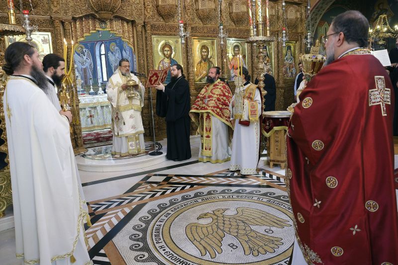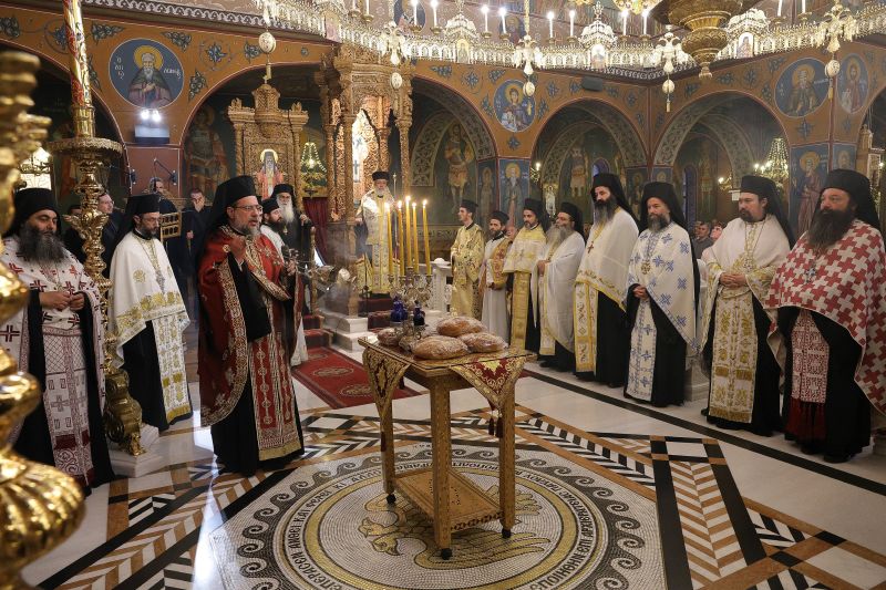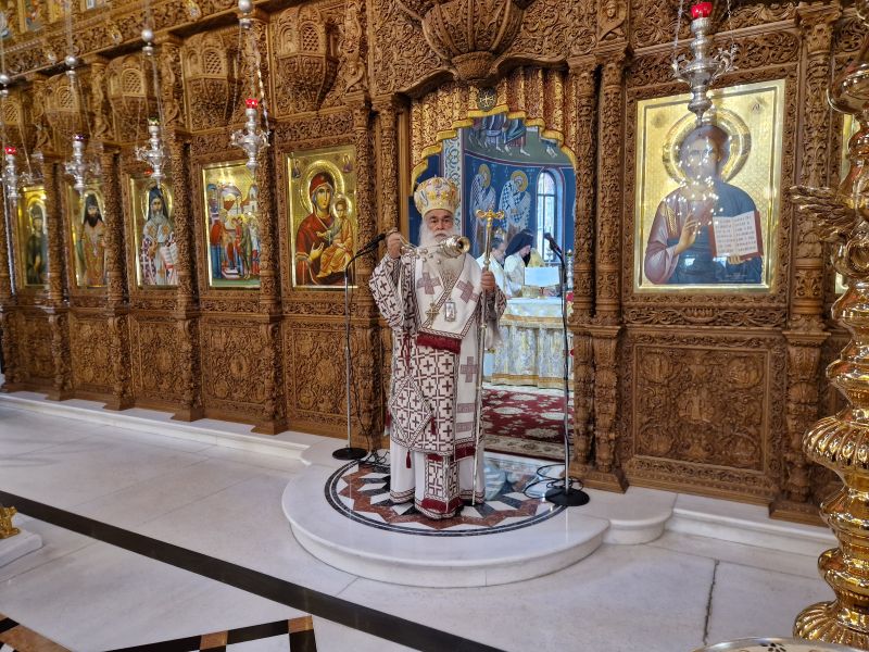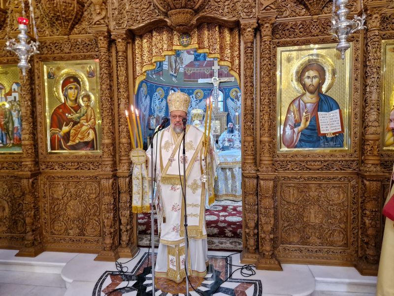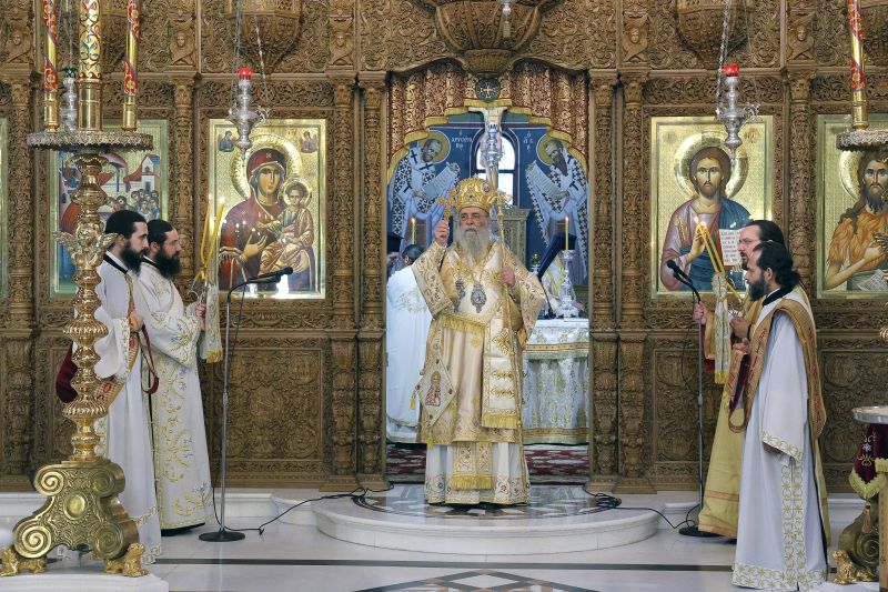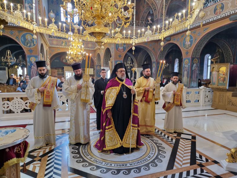 Το πρωί της Πέμπτης τελέστηκε η ακολουθία του Όρθρου και πολυαρχιερατική θεία Λειτουργία στην οποία προεξήρχε ο εορτάζων Μητροπολίτης. Συλλειτούργησαν οι Σεβ. Μητροπολίτες Γουμενίσσης κ. Δημήτριος, Μεσσηνίας κ. Χρυσόστομος, Μαρωνείας και Κομοτηνής κ. Παντελεήμων, ο Θεοφιλέστατος Επίσκοπος Δαφνουσίας κ. Σμάραγδος, ο Θεοφιλέστατος Επίσκοπος Κοτυαίου κ. Διονύσιος και συμπροσευχόμενος παρέστη ο Θεοφιλέστατος Επίσκοπος Αμορίου κ. Νικηφόρος.