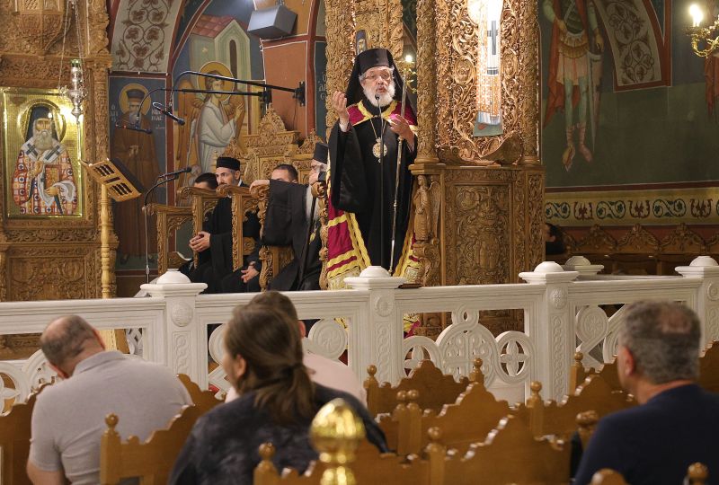 Πριν την απόλυση ο εορτάζων Μητροπολίτης ευχαρίστησε αδελφικά τους συλλειτουργούς Μητροπολίτες, τον Ιερό κλήρο, τους άρχοντες, τις μοναστικές αδελφότητες, το φιλόχριστο λαό, καθώς και όσους στηρίζουν το έργο της τοπικής Εκκλησίας. Κατόπιν δέχθηκε τις ευχές των αρχών του τόπου, του κλήρου και του ευσεβούς λαού στο Επισκοπείο.