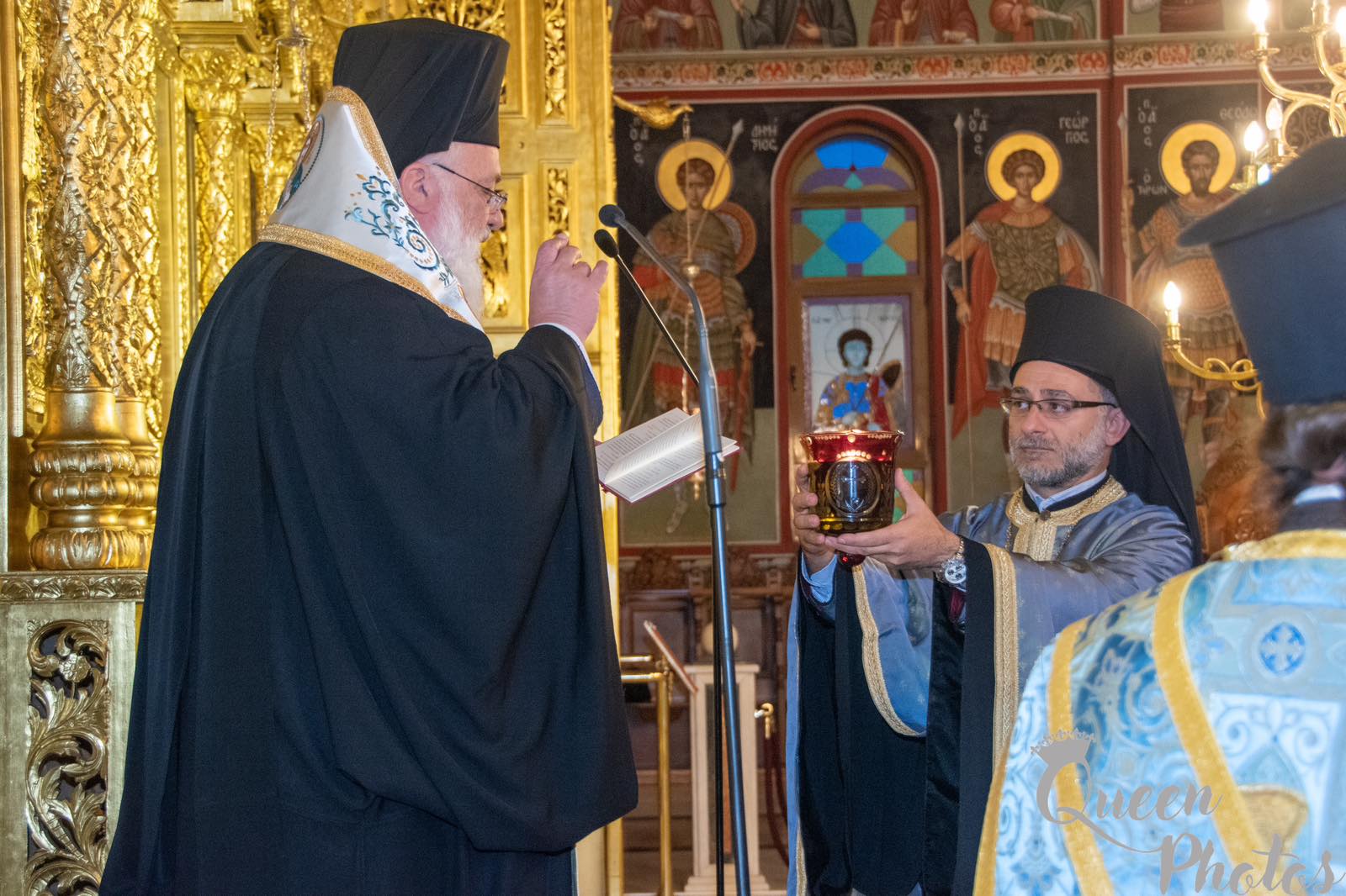 Στο κήρυγμά του ο Σεβασμιώτατος, αναφερόμενος στον τιμώμενο απόστολο, μεταξύ άλλων, είπε: «Ο άγιος Ιάκωβος ο Αδελφόθεος προστάτευσε και καθοδήγησε την Εκκλησία των Ιεροσολύμων σε μία εποχή διωγμών και πνευματικών αποστασιών, και με την διδασκαλία του στήριξε τις καρδιές των ανθρώπων. Ο μαρτυρικός του θάνατος ήταν καρπός της αγιότητος του βίου και της υπομονής του, «ἡ δὲ ὑπομονὴ ἔργον τέλειον ἐχέτω, ἵνα ἦτε τέλειοι καὶ ὁλόκληροι, ἐν μηδενὶ λειπόμενοι» (Ιακ. 1, 4). Η αγιότητα του ας συνεχίζει να σκεπάζει την Εκκλησία και να αποτελεί για όλους μας υπόδειγμα προσευχής και καρτερίας στους δύσκολους και αποκαρδιωτικούς καιρούς που ζούμε. Ας διδαχθούμε από τον μεγάλο αυτό Ιεράρχη της Αγίας Πόλεως ότι πρέπει να έχουμε στη ζωή μας πίστη σταθερή και ακλόνητη αφ’ ενός και έργα συνάδοντα προς αυτήν αφ’ ετέρου, διότι όπως γράφει ο ίδιος «ἡ πίστις χωρὶς τῶν ἔργων νεκρά ἐστι» (Ιακ. 2, 26). Ας είναι για όλους εμάς το φρόνημά του πρότυπο και κεφάλαιο αρχών και πεποιθήσεων, πρότυπο ανεπίληπτου βίου και πρότυπο ζήλου και έργων καλών για να κυριαρχήσει η Βασιλεία του Θεού. Ιδού τα προσόντα και οι προϋποθέσεις, για να είμεθα πραγματικοί «αδελφοί του Κυρίου» και κατά χάριν αδελφόθεοι, ως ο απόστολος Ιάκωβος».