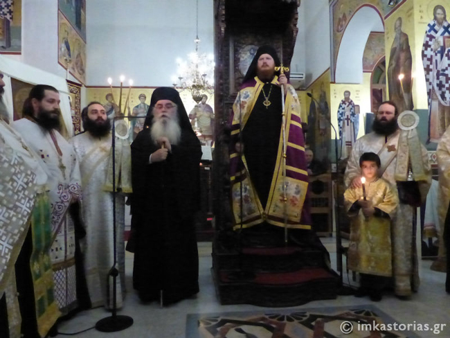 Νωρίτερα, στα προπύλαια του Ιερού Ναού έγινε η υποδοχή των Ιερών Λειψάνων Αγίων της Καστοριάς, τα οποία αποθησαυρίζονται σε διάφορους Ιερούς Ναούς και Ιερές Μονές της περιοχής.