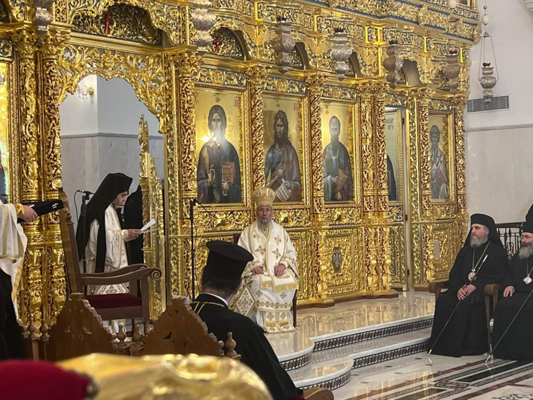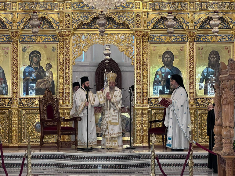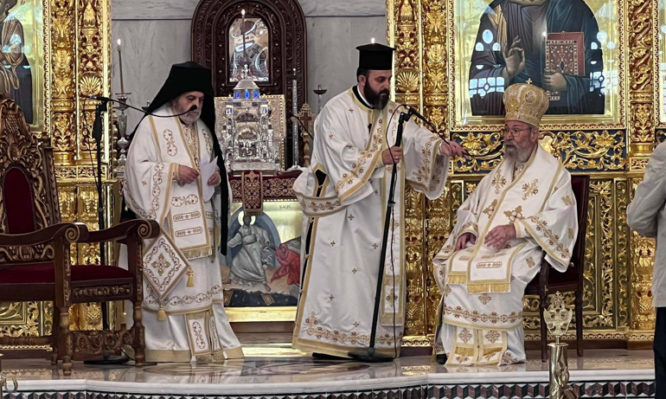 Προς το τέλος της Θείας Λειτουργίας ο εκπρόσωπος του Οικουμενικού πατριάρχη Μητροπολίτης Δέρκων, Γέρων κ. Απόστολος ανέγνωσε το Ευχετήριο Γράμμα για την Θρονική Εορτή τής καθ’ ημάς Εκκλησίας της ΑΘΠ, του Οικουμενικού Πατριάρχη κ.κ. Βαρθολομαίου.