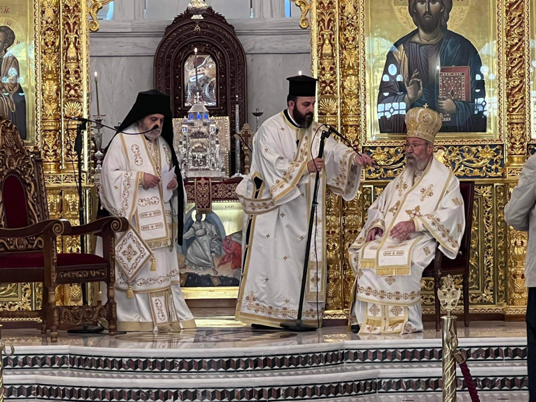 Προς το τέλος της Θείας Λειτουργίας ο εκπρόσωπος του Οικουμενικού πατριάρχη Μητροπολίτης Δέρκων, Γέρων κ. Απόστολος ανέγνωσε το Ευχετήριο Γράμμα για την Θρονική Εορτή τής καθ’ ημάς Εκκλησίας της ΑΘΠ, του Οικουμενικού Πατριάρχη κ.κ. Βαρθολομαίου.