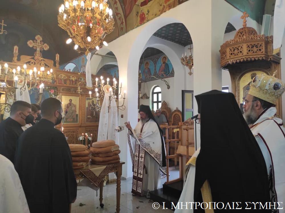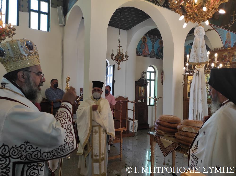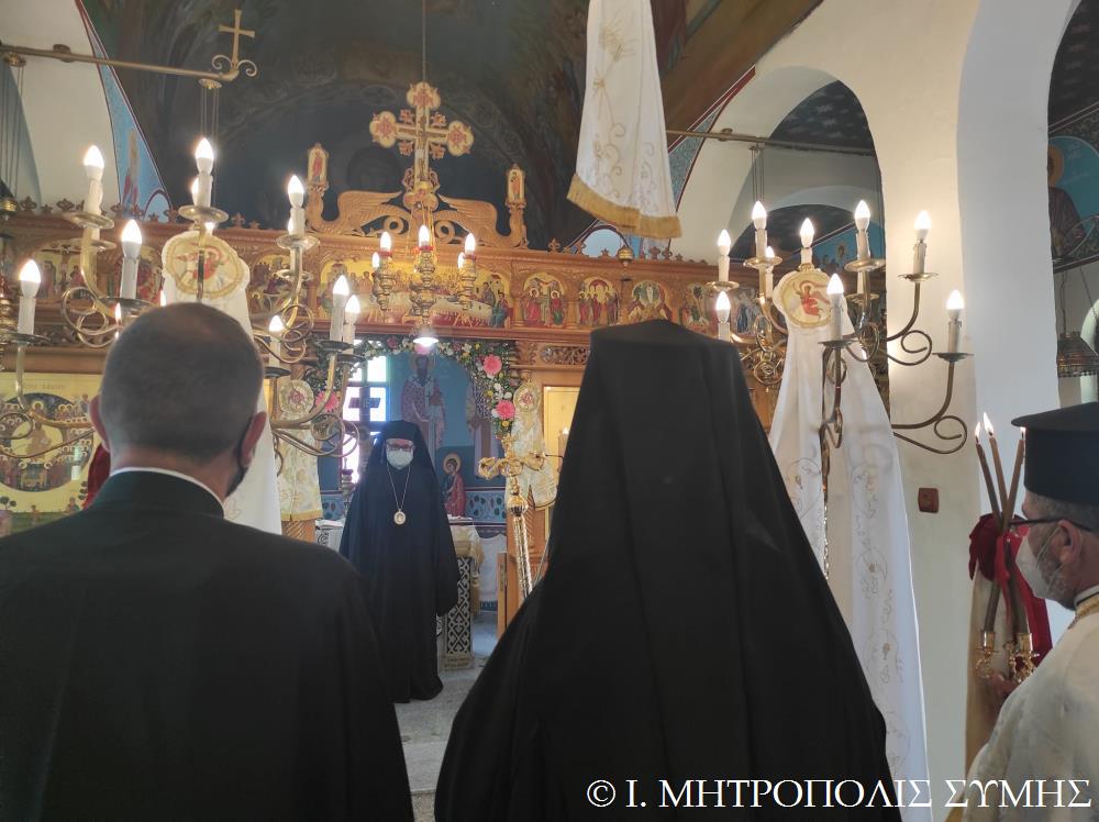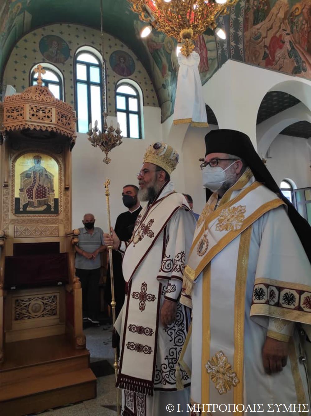Ἡ πανήγυρη κορυφώθηκε σήμερα μέ τήν τέλεση δισαρχιερατικῆς Θείας Λειτουργίας προεξάρχοντος τοῦ Σεβ. Μητροπολίτου μας κ. Χρυσοστόμου, συνιερουργούντος τοῦ οἰκείου Μητροπολίτου κ. Ναθαναήλ, τοῦ Πανοσιολ. Καθηγουμένου τῆς Ἱ. Μονῆς Πανορμίτου Σύμης Ἀρχιμ. Ἀντωνίου Πατροῦ καί τοῦ Αἰδεσιμολ. Ἐφημερίου τῆς Ἐνορίας Οἰκον. Ἀναστασίου Τσουκνιᾶ.