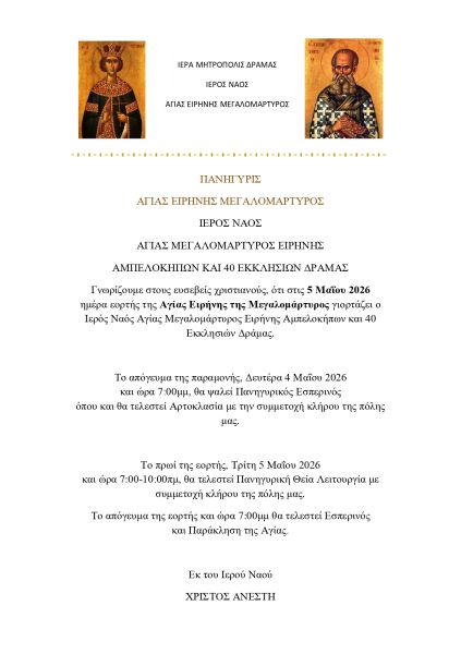Η Εορτή της Αγίας Ειρήνης στη Δράμα
