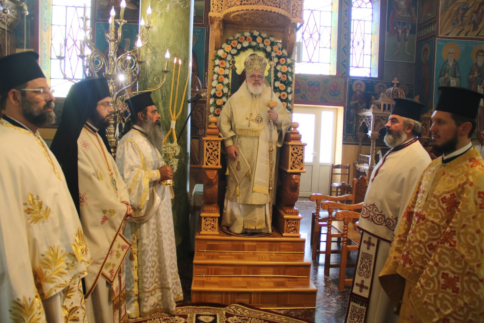 Το πρωί της επόμενης ο Σεβασμιώτατος ιερούργησε στον πανηγυρίζοντα Ιερό Ενοριακό Ναό Αγίας Παρασκευής Ασημενίου και προ του πέρατος της Θείας Λειτουργίας τέλεσε τρισάγιο υπέρ αναπαύσεως των αεροπόρων που έχασαν τη ζωή τους, εκτελώντας το καθήκον τους για την κατάσβεση της πυρκαγιάς στην Κάρυστο.