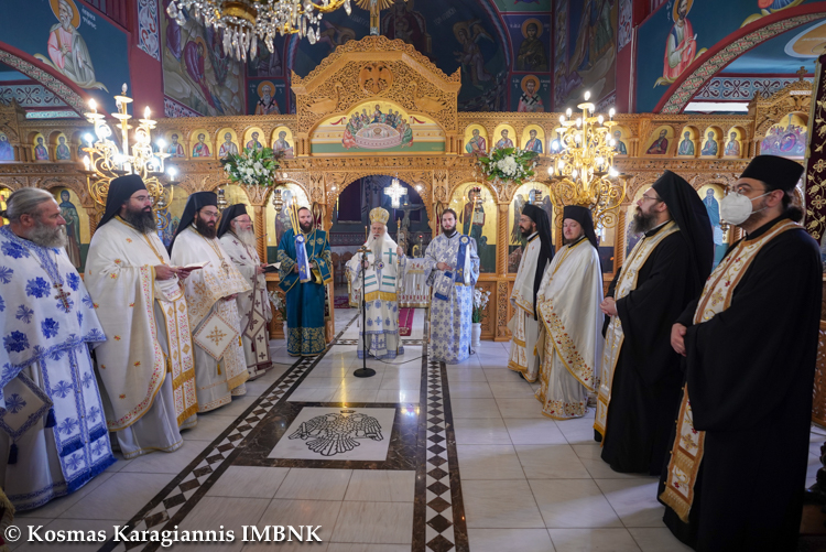 Ανήμερα της εορτής το πρωί, ο Ποιμενάρχης μας, λειτούργησε και κήρυξε τον θείο λόγο στον Ιερό Ναό των Αγίων Κωνσταντίνου και Ελένης Λουτρού και τέλεσε το τεσσαρακονθήμερο μνημόσυνο του κατά σάρκα πατρός του Υπευθύνου της «Φιλοξενίας Δοβρά 2022» Αρχιμ. Εφραίμ Παπαμανώλη, μακαριστού Ευαγγέλου Παπαμανώλη.