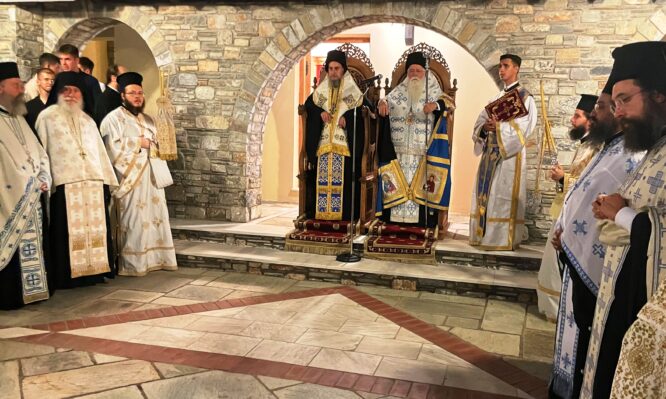 Ακολούθησε Ιερά Αγρυπνία, ιερουργούντος του Σεβ. Μητροπολίτου μας κ. Ιγνατίου, συλλειτουργούντος του Θεοφ. κ. Επιφανίου, ενώ στο τέλος ο Σεβασμιώτατος τέλεσε ιερό μνημόσυνο για την ανάπαυση οικείων και προσφιλών προσώπων.