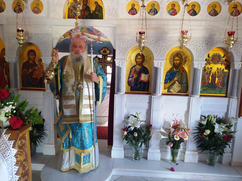 Ο Μητροπολίτης μετέβη στον Ιερό Ναό, όπου χοροστάτησε στον Όρθρο, ευλόγησε τους  άρτους, ιερούργησε και κήρυξε τον θείο λόγο.