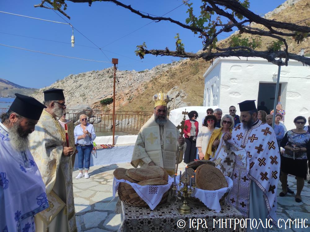 Ὁ Σεβασμιώτατος, ὁ ὁποῖος κήρυξε καί τόν θεῖο λόγο ἀναλύων τά ὑψηλά νοήματα τῆς Ἑορτῆς, μετά τήν Θ. Λειτουργία προέστη τῆς Λιτανείας τῆς ἱ. Εἰκόνος καί ἐν συνεχείᾳ εὐλόγησε τούς προσφερομένους Ἄρτους. Μετά τό πέρας, ἡ φιλόξενη Ἐπιτροπή τοῦ Ἱ. Ναοῦ προσέφερε καφέ καί τά καθιερωμένα ἑόρτια κεράσματα στούς συμμετέχοντες πιστούς, ὥστε ἡ πνευματική χαρά νά διοχετευθεῖ καί στήν διαπροσωπική ἐπαφή καί ἐπι-κοινωνία τῶν ἀνθρώπων.