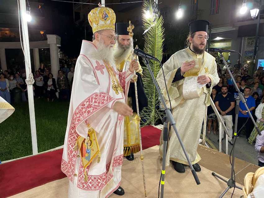 Ο Σεβ. Μητροπολίτης ομίλησε επίκαιρα στους πιστούς, στην κεντρική πλατεία της πόλεως, ευχόμενος η Παναγία, η «Γιάτρισσα» να γιατρεύει τις ψυχές, τα σώματα και την κρίση όλων μας ώστε να παίρνουμε πάντοτε τις κατάλληλες αποφάσεις.