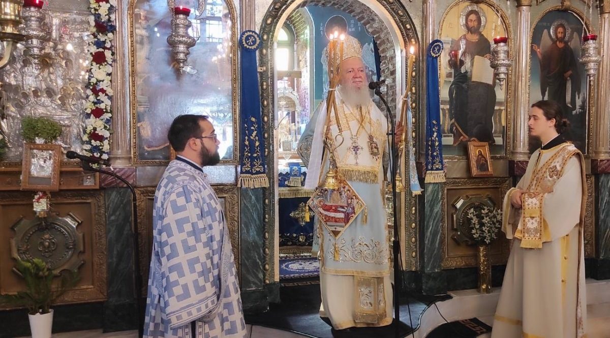 Ο Σεβασμιώτατος διηκόνησε τον ιερό άμβωνα, αναλύοντας ερμηνευτικά και με διδακτικό τρόπο την αναγνωσθείσα ευαγγελική περικοπή (Λουκά 10, 38-42 και 11, 27-28), τονίζοντας τον μακαρισμό της γυναίκας εκ του όχλου, τον οποίο επιβεβαιώνει ο Ιησούς Χριστός με την τριπλή επιβεβαίωση «μενούνγε», κατά την οποία επαληθεύεται η προφητεία της ωδής της Θεοτόκου «Ιδού γαρ από του νυν μακαριούσι με πάσαι αι γενεαί…»