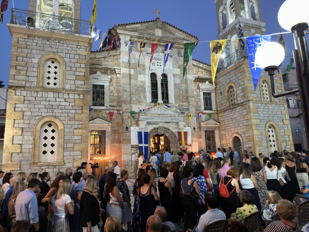 Την παραμονή της εορτής, Δευτέρα 14 Αυγούστου, πλήθη πιστών συγκεντρώθηκαν στον πανηγυρίζοντα ιστορικό Ιερό Ναό της Μεγάλης Παναγίας – Αγίου Δημητρίου Θηβών για να προσκυνήσουν τη θαυματουργή εικόνα της Μεγαλόχαρης και να τιμήσουν τη μνήμη της. Στον Εσπερινό χοροστάτησε ο Σεβασμιώτατος Ποιμενάρχης Θηβών κ. Γεώργιος πλαισιούμενος από τους ιερείς της πόλης, τη στρατιωτική και πολιτική ηγεσία της περιοχής και πιστούς όλων των ηλικιών. Μετά τον Εσπερινό ακολούθησε μεγαλοπρεπή λιτάνευση της εικόνας της Παναγίας στους δρόμους της πόλης των Θηβών.