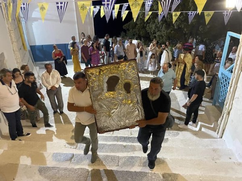 Με κατάνυξη και μεγαλοπρέπεια η νήσος Αστυπάλαια εόρτασε την Κοίμηση και την εις ουρανούς μετάσταση της Κυρίας Θεοτόκου, όπου θησαυρίζεται η Θαυματουργός Ιερά Εικών της Παναγίας της Πορταϊτίσσης (θαυμαστός επέστη εν Αστυπαλαία).