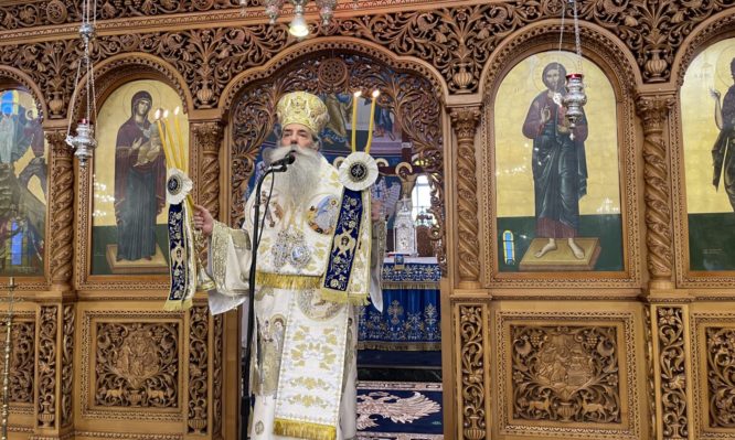 Ο Σεβασμιώτατος, μεταξύ άλλων, αναφέρθηκε στο γεγονός της Μεταμορφώσεως του Κυρίου μας ενώπιον των Μαθητών του Πέτρου, Ιακώβου και Ιωάννου, καθώς και στο αΐδιο Θαβώριο Φως, του οποίου οι τρεις μαθητές είχαν τη μεγάλη και υψηλή όραση «καθώς ηδύναντο», αφού, όπως τόνισε, δεν ήταν ικανοί να δεχθούν όλο το πλήρωμα και την τελειότητα του φανερωθέντος σε αυτούς Φωτός, που φανερώνεται ως καθαρά άνωθεν ευδοκία.