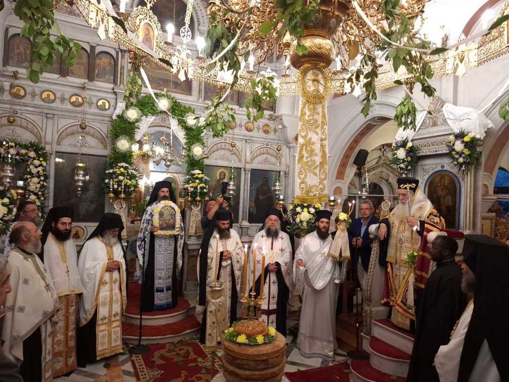 Τήν κυριώνυμο ἡμέρα τελέσθηκε ὁ ἑόρτιος Ὄρθρος, ἡ πανηγυρική Θ. Λειτουργία, ἡ ἐπίσημος Δοξολογία και ἡ ἐπιμνημόσυνη Δέησις ἔμπροσθεν τῆς προτομῆς τοῦ Λυκούργου Λογοθέτη και τῶν Λειψάνων αὐτοῦ και τοῦ Ἀρχιεπισκόπου Σάμου Κυρίλλου, προεξάρχοντος τοῦ σεπτοῦ μας Ποιμενάρχου.