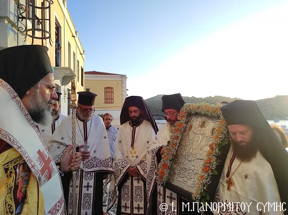 Τήν Μεγάλη Δεσποτική Ἐορτή τῆς Θείας Μεταμορφώσεως τοῦ Σωτῆρος Χριστοῦ, πανηγύρισε καί ἐφέτος Κυριακή 6η Αὐγούστου 2023 μέ τήν δέουσα ἐκκλησιαστική λαμπρότητα ἡ Νῆσος τῆς Σύμης, ἡ ὁποία σεμνύνεται μέ τέσσερις Ἱ. Μονές καί Ναούς πού τιμῶνται στήν μεγάλη αὐτή Δεσποτική ἑορτή. Ἐπίκεντρο ἀσφαλῶς τῆς Πανηγύρεως κατέστη ἡ παλαίφατη Ἱ. Μονή Μεγάλου Σωτῆρος Σύμης, ἡ ὁποία ἀπό αἰώνων ἀποτελεῖ Μετόχιον τῆς Ἱερᾶς Μονῆς Πανορμίτου καί τό τελευταῖο διάστημα ἀνακαινίζεται καί ἐκ βάθρων ἀναστηλώνεται καί εἰς τήν ὁποίαν ὁ Σεβ. Μητροπολίτης κ. Χρυσόστομος, προέστη τῶν Πανηγυρικῶν Ἱ. Ἀκολουθιῶν.