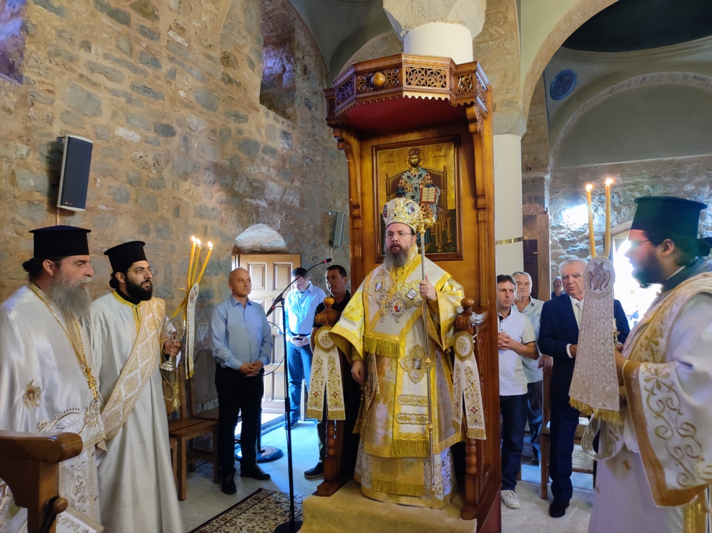 Με τον Σεβασμιώτατο συλλειτούργησαν ο Πρωτοπρ. Ευάγγελος Φωτάκης, ο Αρχιδιάκονος Στέφανος Καππές και ο Διάκονος Αμβρόσιος Καλλιάφας. Τους ύμνους της εορτής απέδωσαν οι Πρωτοψάλτες κ. Γεώργιος Γαρουφαλής και κ. Γεώργιος Βλάχος.