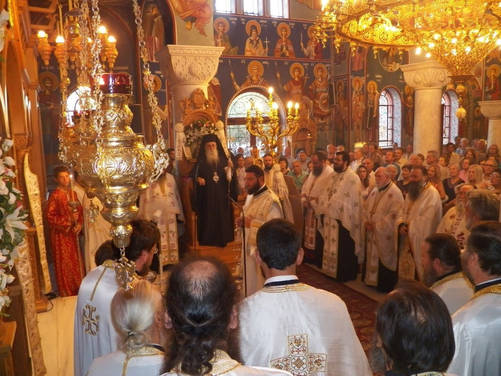 Ο Μητροπολίτης Γλυφάδας κ. Παύλος, προεξήρχε στον Πανηγυρικό Εσπερινό, ενώ τον Θείο Λόγο κήρυξε ο Καθηγούμενος της Ιεράς Μονής Αγίας Τριάδος-Αγίου Νεκταρίου Τερψιθέας Γλυφάδας και Προϊστάμενος του Ι.Ν. Κοιμήσεως Θεοτόκου Καραπάνου Γλυφάδας, Αρχιμανδρίτης π. Κλαύδιος Καλαράς.