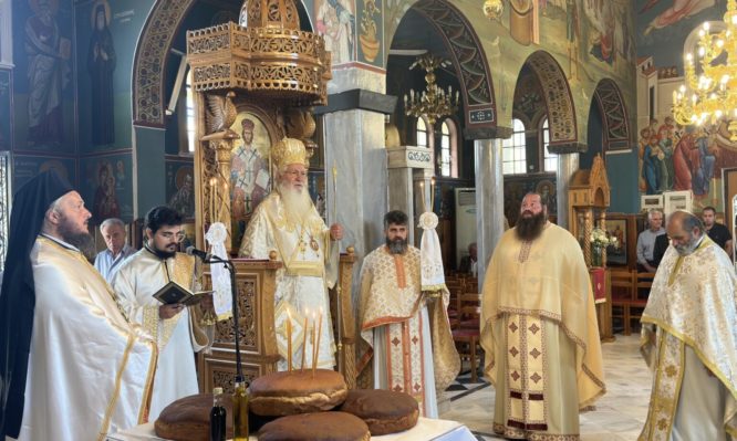 Ο Σεβασμιώτατος Ποιμενάρχης μας κ. Γεώργιος το πρωί της Τρίτης 26 Σεπτεμβρίου τέλεσε τη Θεία Λειτουργία στον Ιερό Ναό Αγίου Γεωργίου Ελεώνος Θηβών. Το θείο λόγο κήρυξε ο πανοσ. αρχιμ. π. Δανιήλ Στέφας. Ο Σεβασμιώτατος ευχήθηκε σε όλους πλούσιες τις ευλογίες του Θεού δια πρεσβειών του Αγίου Ιωάννου.