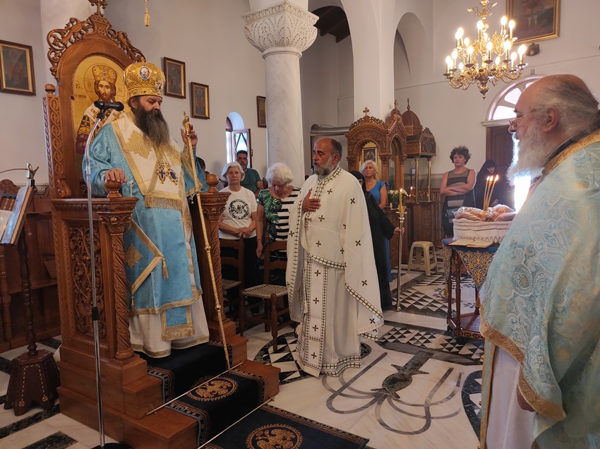 Στην Θ. Λειτουργία έλαβαν μέρος ο Προηγούμενος της Ι. Μονής Αγίου Ιωάννου Θεολόγου Πάτμου Πανοσ. Αρχιμ. π. Αντίπας Νικηταράς, ο Πάτμιος Πρωτοπρεσβύτερος του Οικουμενικού Θρόνου π. Ελευθέριος Χρυσοχόος, Γραμματέας του Γραφείου Εκπροσωπήσεως του Οικουμενικού Πατριαρχείου στην Αθήνα και ο Διάκονος π. Χρήστος Χίλιας, ενώ τα Ιεροψαλτικά αναλόγια διακόνησαν μετά ζήλου ο κ. Σωτήριος Κουτσούρης, δάσκαλος στα εκπαιδευτήρια «ΘΕΟΜΗΤΩΡ», συνοδευόμενος από χορωδούς.