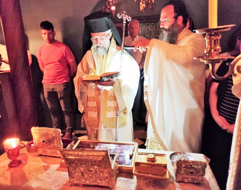 Το εσπέρας της Παρασκευής 30 Ιουνίου, ετελέσθη Αρχιερατικός Εσπερινός υπό του Θεοφ. Επισκόπου Στρατονικείας κ. Στεφάνου, συμπαραστατουμένου υπό του πρωτοπρεσβυτέρου Δαμασκηνού Παλαπουγιούκ, κτήτορος του ιερού ναϋδρίου.