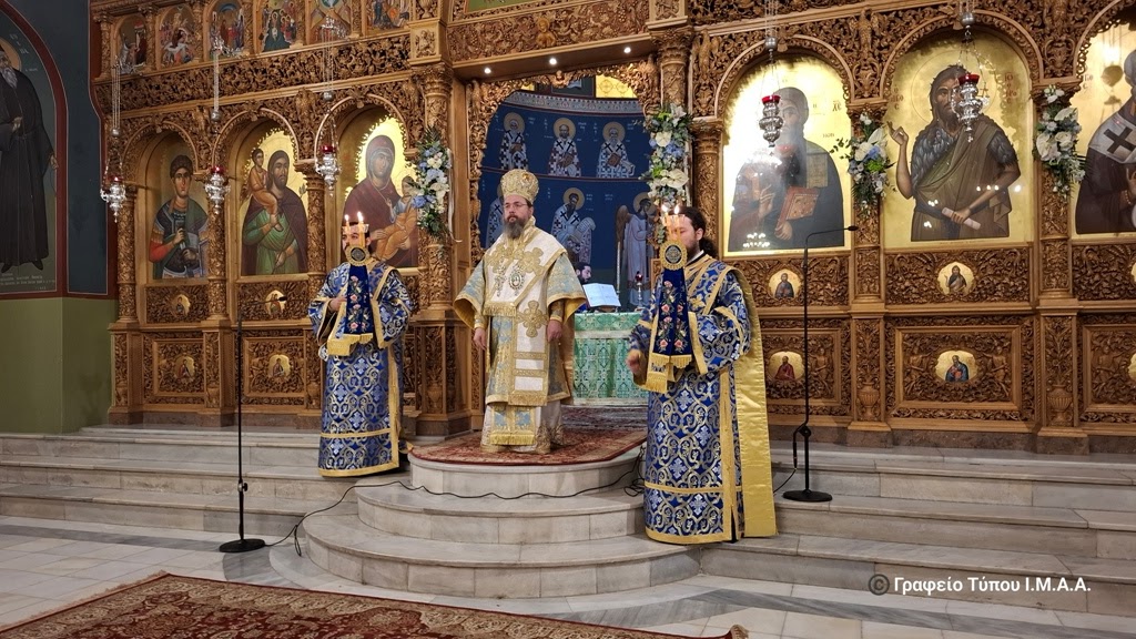 Ο Σεβασμιώτατος ιερούργησε στον Ιερό Ναό με αφορμή τα ονομαστήρια των δύο εκ των τριών Εφημερίων, του Πρωτοπρ. Ιωάννου Γκιάφη και του Πρωτοπρ. Ιωάννου Λουκά, στους οποίους ευχήθηκε κατάλληλα και για την ονομαστική τους εορτή και για τη νέα χρονιά.