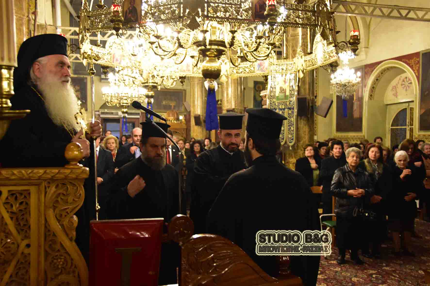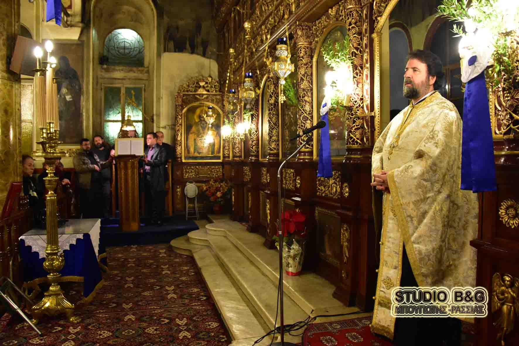 Στον πανηγυρικό εσπερινό χοροστάτησε ο Μητροπολίτης Αργολίδος κ. Νεκτάριος πλαισιωμένος από ιερείς από το Αργος και το Ναύπλιο.